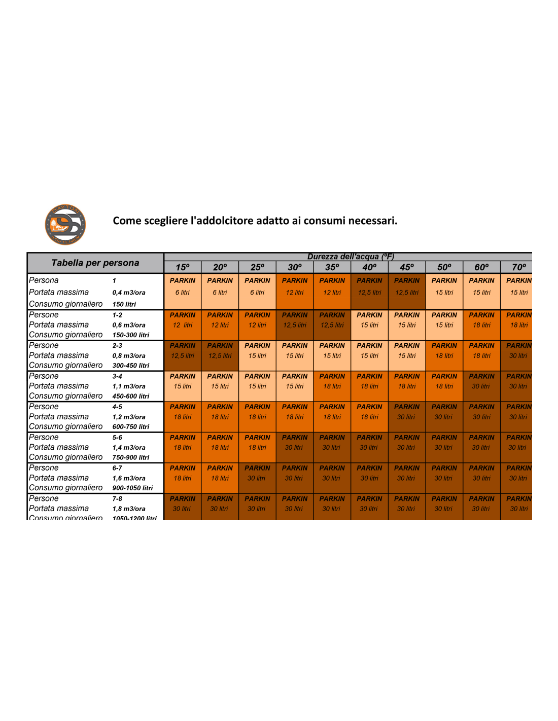 * Quantita' acqua trattata per rigenerazione, 35°F-0,628m3, 40°F-0,550m3, 45°F-0,488m3, 50°F-0,440m3, 60°F-0,366m3.