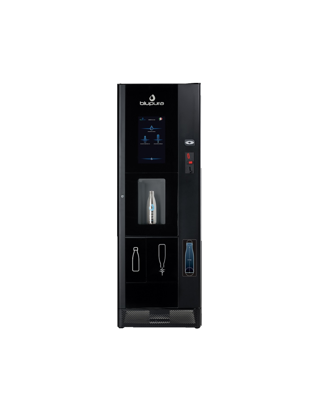 La water vending machine di nuova generazione che eroga 4 tipologie di acqua su bicchiere o borraccia permettendo anche l’acquisto di una borraccia termica da 500 ml o della sola igienizzazione.